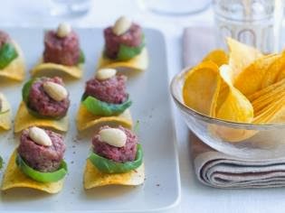 Préparation de la recette Mini tartares de boeuf aux amandes sur tuiles