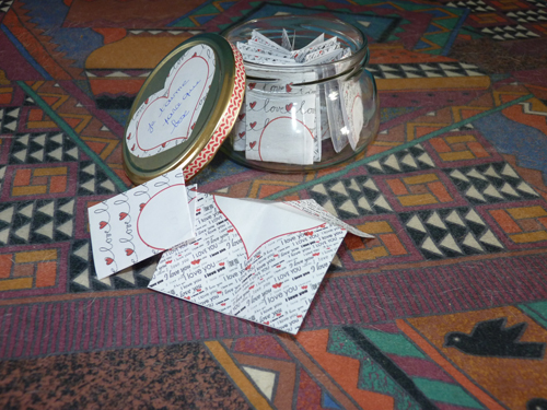 Bonjour à tous, aujourd’hui je vous propose une idée qui a perdu de son originalité puisque déjà vue, revue et corrigée en différentes versions : jeux, gages, bons, messages, etc. Rien d’original donc sous les nuages poitevins, mais qui reste toujours sympa et que vous pouvez adapter à bien des choses !