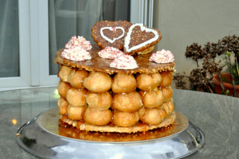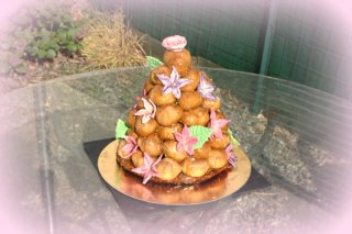 Elle était constituée de 45 choux (et oui, même si elle reste moins impressionnante que les pièces montée plus importante, c’est réalisable et je trouve que ça reste mignon d’un point vue visuel)