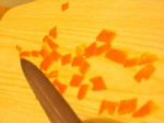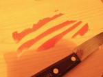 Sortir le biscuit roulé du réfrigérateur. Trancher une des extrémités de la bûche. Elle servira pour faire un “noeud” (comme dans une vraie bûche).