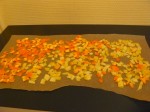 Etaler le biscuit sous forme de rectangle sur une plaque d’environ 30 x 40 cm recouverte de papier sulfurisé. Enfourner pendant 5 à 6 minutes environ.