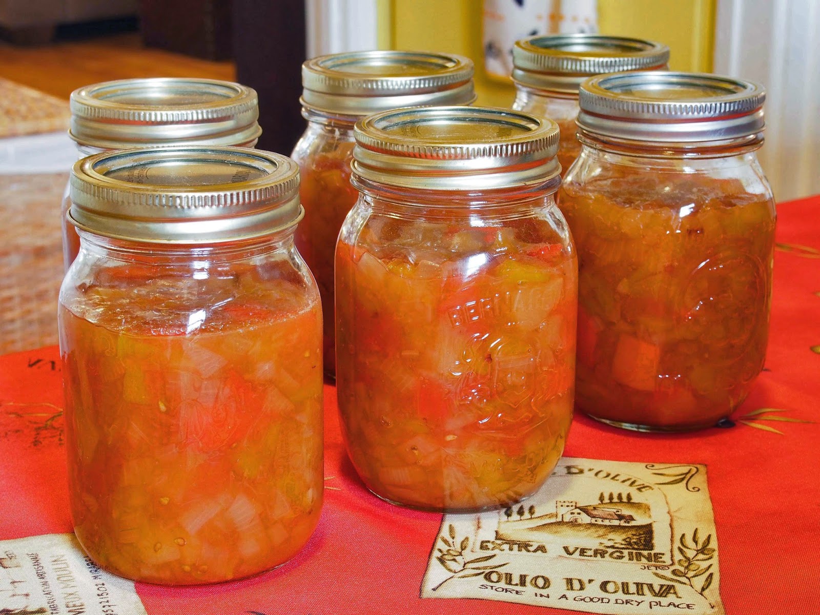 Arrêter la cuisson lorsque le ketchup a suffisamment épaissi. Congeler ou mettre en conserve dans des pots stérilisés. La recette donne environ 6 à 7 litres de ketchup.